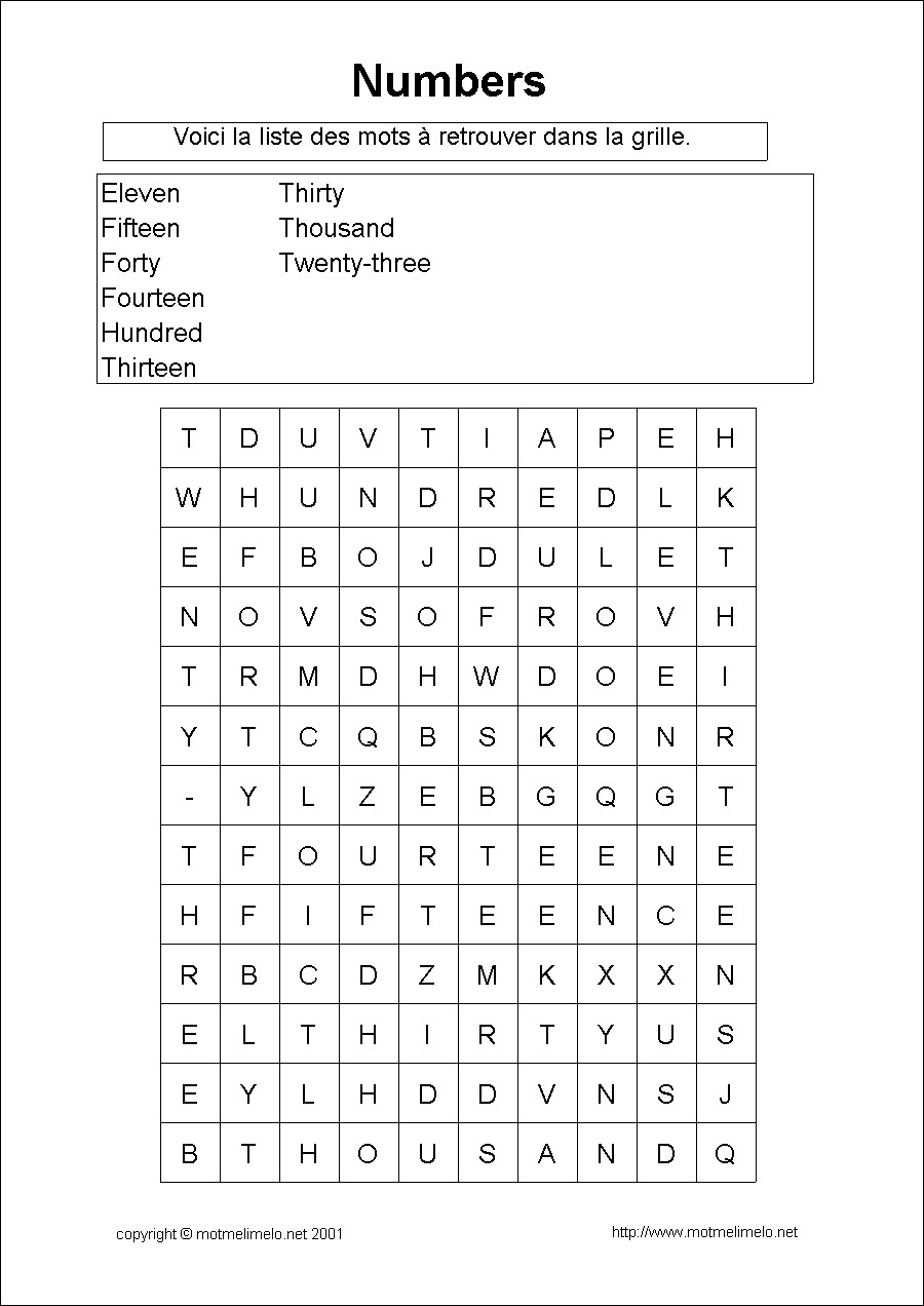 | mots utilisés: January February March April May June July August September October November December | mots utilisés: Thirteen Forty Eleven Twenty-three Hundred Thousand Fifteen Fourteen Thirty