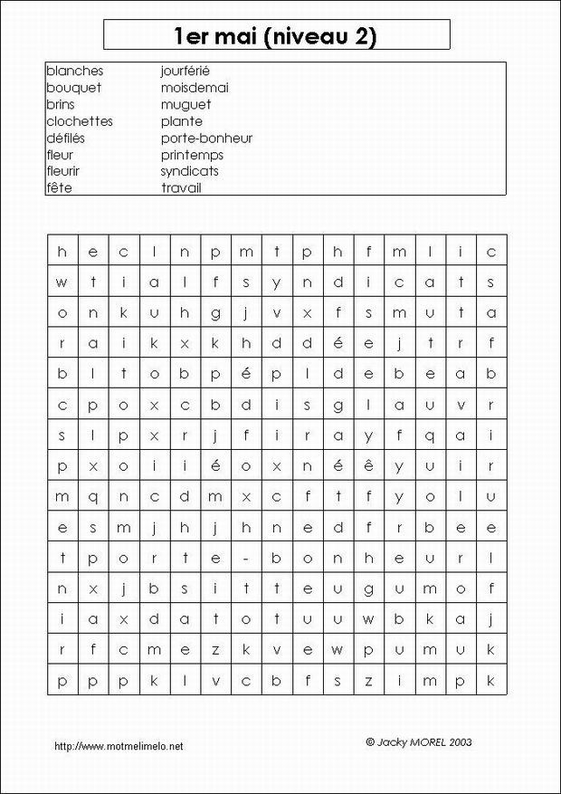 mots utilisés: fête syndicats travail défilés jour férié muguet porte-bonheur fleur mois de mai brins clochettes blanches bouquet printemps plante fleurir |