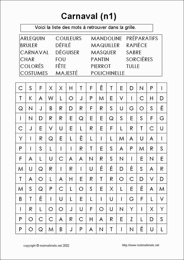 Carnaval NIVEAU 1 Sandra Huault Rouen France grille interactive |