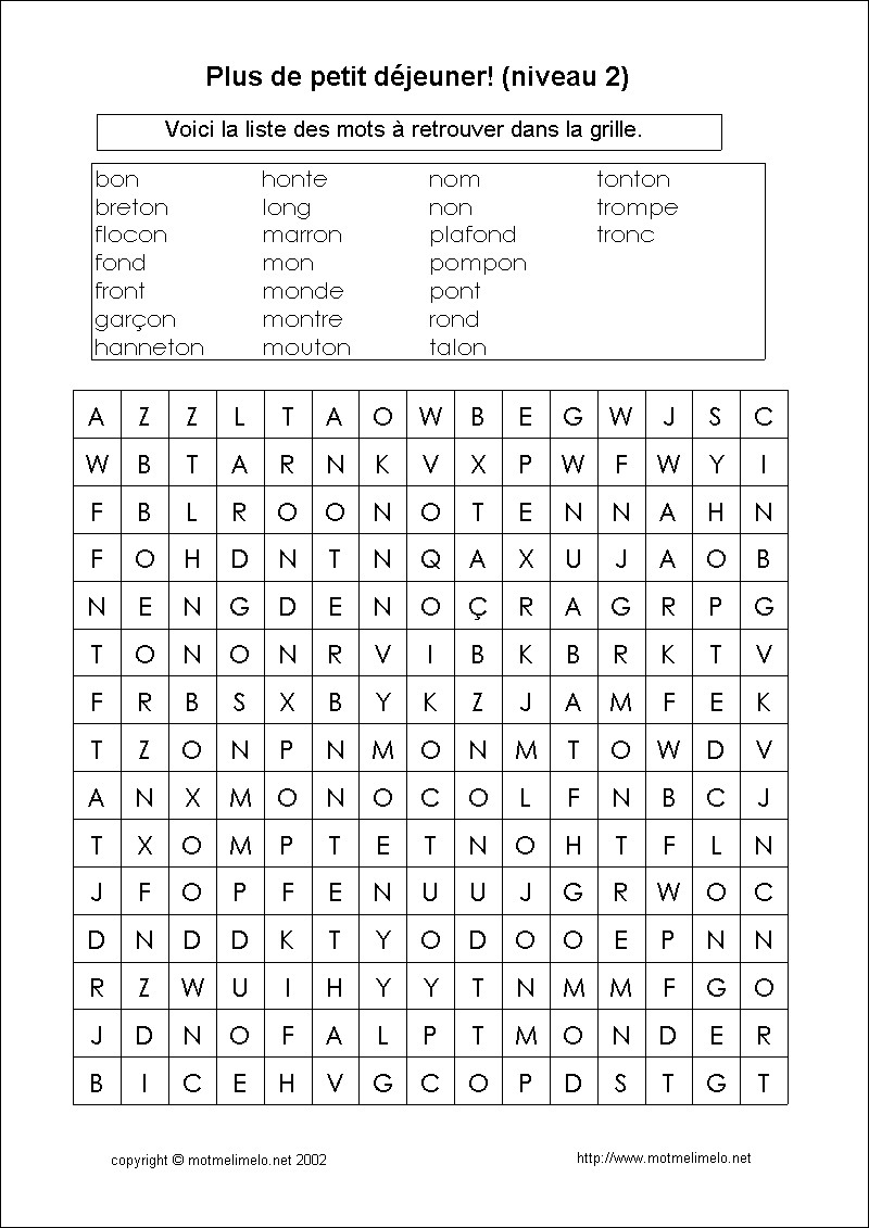 mots utilisés: non mon nom pont breton long rond tonton fond bon mouton honte monde tronc talon marron pompon montre hanneton garçon flocon trompe front plafond |