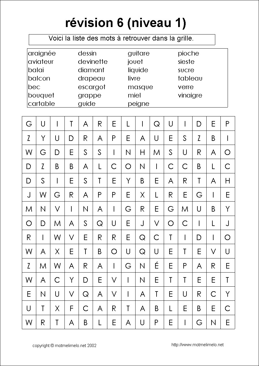 télécharger les mots mêlés révision 6 niveau 1