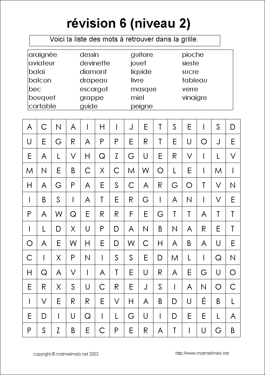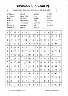 télécharger les mots mêlés révision 6 niveau 2